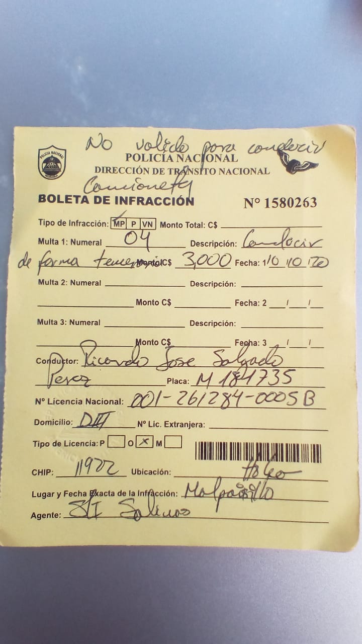 Consulta los precios de las multas de transito en nicaragua según la ley de reformas y adiciones a la ley n° multas de transito. Desde hace meses, he estado queriendo escribir algo con respecto a las multas de transito en nicaragua y su nueva modalidad de entrega, ahora que ya poseo parte de la experiencia personal, procedo a comentarles mi reconocimiento inicial.